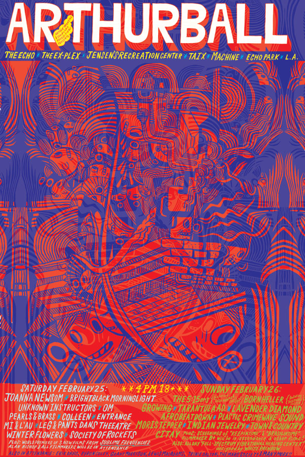 While the rest of the comics world is in New York, getting turned away from their own convention, Grant Morrison appeared in Los Angeles last night to give a talk as part of the ArthurBall in Echo Park. He’s just as entertaining in person as you’d imagine from reading his interviews. A few random tidbits: