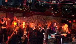 including an eight-member horn section. Most of the band members were women. Mr. Wood looked much as he did in the 1970’s, bearded with brightly dyed long hair.