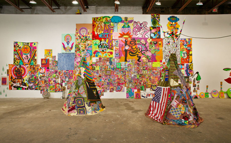 As the 1960s washed over Los Angeles, the ripple of fuck-you new money began seeping into the canyon, young people with record contracts and reefer smirks. When architect Robert Byrd needed a place to live between marriages, his son Gary helped him build a small house just behind the Tom Mix log cabin, then vacant. Gary Byrd recalls when clearing the property, the father and son discovered Äúone of the Barrymore kidsÄù living inside a shack. The following year, a communal family of weirdos moved into the cabin and treehouse, centered around two underground hipsters named Vito Paluekas and Carl Franzoni, organizers of freeform dance troupes at clubs along Sunset Strip. The dancers wore freaky clothing, and flopped and pogoed alongside bands like the Byrds and the Mothers of Invention.