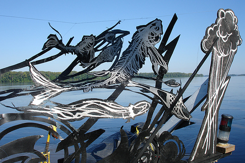 Here’s the plan: Last year we met in Minneapolis in late July with sections of our raft in tow. We pieced together our pontoons and filled them with salvaged blocks of foam. We made it beautiful and tied on anything that would float, adding it to our junk armada, our anarchist county fair, our fools ark. Our precious cargo is everything we hold dear: pieces and parts of the culture we are already creating. Our zines and puppets, sewing projects and poster campaigns, mutant bicycles and punk rock marching bands. Plus our thoughts and dreams and irrepressible energy.