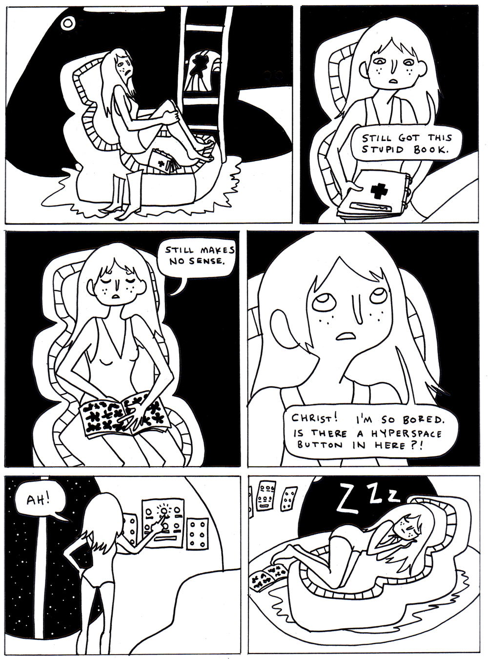 Katie Skelly lives in New York City. She works full time and is working on an art history M.A. so she does comics whenever she has spare time. Sparkplug distributes the Nurse Nurse series, and she hopes to have the fifth issue out very soon. Her website is calicocomics.com. Arthur is pleased to present issue 4 of Nurse Nurse, which we’ll serialize in 3 parts. Read part 1 here and part 3 here.