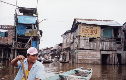 “The Venice of Peru” is tacked together from the continuous stream of balsa rafts floating down the Amazon. Harvesting balsa is profitable only when used to hide the great bulks of coca paste sent down river. All day and night saw blades shriek in the mills lining the river, giving the air a fresh piney scent. It is in this way that the world loses its last rainforest to gain another slum.