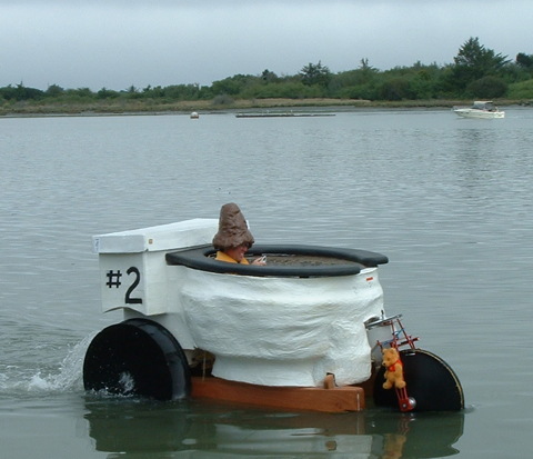 Hobart Brown claims the title of Glorious Founder of the Kinetic Sculpture Race, but race director Bill Croft runs the thing. Croft is a sewing machine repairman who moved to Humboldt County with his wife when he retired from the Coast Guard ten years ago. Although the racers are following an arcane set of rules that Hobart and others have developed over the last three decades, it’s up to Croft to make sure the race follows the rules in terms of city permits, traffic safety, insurance and crowd control. In a phone interview a week before the race he tells me that he knows a lot about Porta-Potties, that Hobart is “the worst businessman ever,” and that without his organizational assistance it was only a matter of time before the race was going be shut down.