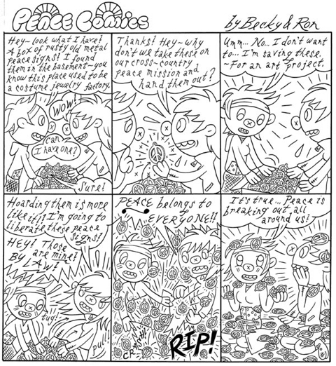 Ron [Rege, Jr.] was reading Peace Is Every Step by Thich Nhat Hanh and came across the phrase “imagine our love” in a passage about covering the world with loving prayer. Thich Nhat Hanh is a peace activist from Vietnam who was brought to the U.S. by Martin Luther King, Jr. in an effort to end the Vietnam War. Peace Is Every Step teaches how to cultivate the strength and power of a loving heart, about love and communication. How to be a peaceful person—a warrior of peace. He talks about how the people he was with in Vietnam had to heal from the war. It is very beautiful and inspiring and heartbreaking. He’ll be at MacArthur Park in Los Angeles leading a peace walk in September. Peace is every step!