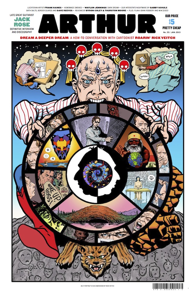 That’s not to suggest that Arthur‘s team of contributors is of that stature, only that we share the same general program of cultural uplift — a desire to be something of more use than the general consumer guide that masquerades as a magazine in these sad, devolving times. In the last few years, Arthur‘s contributors have included Byron Coley & Sonic Youth’s Thurston Moore, whose regular “Bull Tongue” review column has been absolutely essential reading for anyone interested in contemporary underground culture; authors Trinie Dalton, Douglas Rushkoff, Erik Davis, Brian Evenson and Daniel Pinchbeck; veteran journalists Kristine McKenna, Peter Relic, Gabe Soria, Daniel Chamberlin, Dave Reeves, Sorina Diaconescu, John Payne and Eddie Dean; photographers Melanie Pullen, Eden Batki and Susannah Howe; and countless other writers, cartoonists, photographers, poets and –of course– designers.