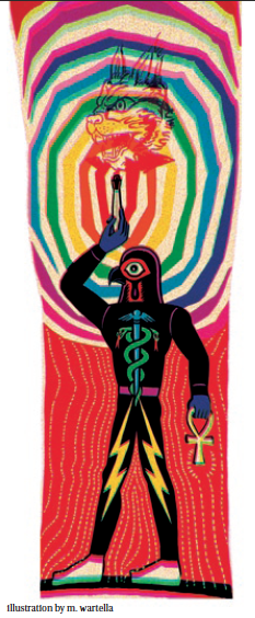 Over the years, wands have played a variety of roles: instruments for measurement, props for illusions, scepters for governance, and, as 50 Cent can attest, as phallic symbols noted for their procreative ability. As tools for healing we see their continued use in the hands of Reiki practitioners; however, the connection to the healing arts goes way back. The ancient Greeks, for example, used the rod of Asclepius (featuring a snake coiled around a stick) to represent medicine; a tradition still carried on by today’s medical professionals. Ironically, the rod of Asclepius is often substituted with Mercury’s wand (two snakes forming a double helix around a winged staff), which traditionally represented both commerce and thievery, two traits often associated with the contemporary medical establishment.