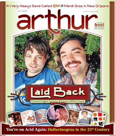 Contents: How nature droners GROWING found their flow. By Peter Relic, with photography by Eden Batki // Swiss anthropologist-author JEREMY NARBY talks with Jay Babcock about what hallucinogens like LSD and the Amazonian drink ayahuasca have to teach us in the 21st century. Introduction by author Erik Davis, with an illustration by Arik Roper // How columnist DOUGLAS RUSHKOFF learned to stop worrying about current events // Why power duo Al Cisneros and Chris Haikus reunited to make the meditation-suitable heavy metal sound of OM // Columnist David Reeves on the main reason why the USA should seal its border with Mexico // Peter Lavezzoli on the life, work and astounding impact of North Indian vocalist PANDIT PRAN NATH, guru to Western minimalists La Monte Young and Terry Riley // “New Herbalist” columnist Molly Frances on Lord Byron’s secret elixir and the Prophet Muhammed’s top condiment: VINEGAR // How to recognize—and use—OCCULT FORCES, by the Center for Tactical Magic // Notes from Mardi Gras in New Orleans, 2006 by the intrepid Gabe Soria // Comics by Vanessa Davis, Chris Wright and PShaw // Scenes from ArthurBall 2006, featuring Joanna Newsom, The 5:15ers (Joshua Homme & Chris Goss) and Moris Tepper and Polly Harvey // Bull Tongue columnists BYRON COLEY & THURSTON MOORE review new releases // C & D riff into the dawn // Peter Relic’s Book Corner spotlights new poetry collections by Alex Mitchell and John Tottenham