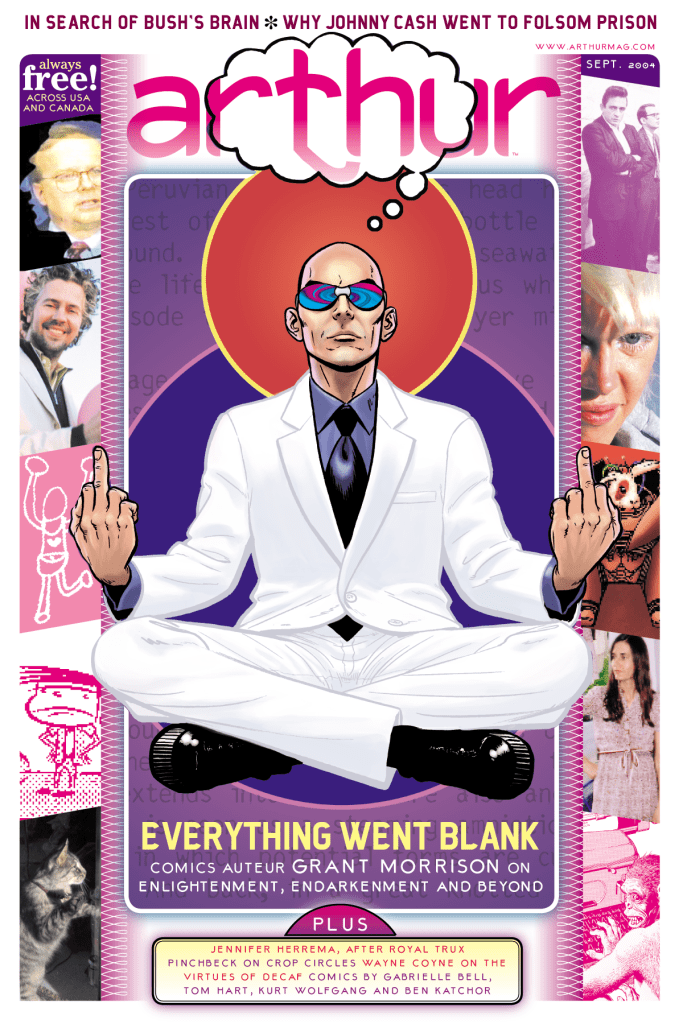 Contents: Magic works, says comics author GRANT MORRISON, and he would know—he’s been exploring it for 25 years. He talks with Jay Babcock about what he’s experienced, and What It (Maybe) All Means. Cover portrait by Seaguy artist Cameron Stewart. // In an exclusive, extensive excerpt from his forthcoming book, Michael Streissguth explains why JOHNNY CASH went to Folsom Prison to make a live record. With stunning photography by Jim Marshall // Royal Trux are gone, but RTX lives on. JENNIFER HERREMA talks with Trinie Dalton about chasing that airtight classic rock sound. // “Camera Obscura” columnist Paul Cullum goes in search of Bush’s brain—and finds it, in a new documentary. // Answerman T-Model Ford on breastfeeding, the ‘sugar tittie,’ what to eat on a first date and how come there aren’t more women playing the blues. // JOSEPHINE FOSTER of Born Heller and the Children’s Hour talks about her new acid-rock project The Supposed with Margaret Wappler. With a portrait by Plastic Crimewave. // Flaming Lips’ WAYNE COYNE discusses the virtues of decaf. // Columnist Daniel Pinchbeck on why crop circles have something to teach us with an illustration by Arik Roper // Never mind Metallica’s therapy film: James Parker reviews the new, strangely good Brian Jonestown Massacre Vs. Dandy Warhols documentary, Dig! // Britgenius author Steve Aylett provides a horoscope, with zodiac designs by Arik Roper // New comics by Ben Katchor, Gabrielle Bell, Tom Hart and Kurt Wolfgang // “Bull Tongue” columnists Byron Coley & Thurston Moore review stuff // Bickering mysterions C & D comment on new recordings