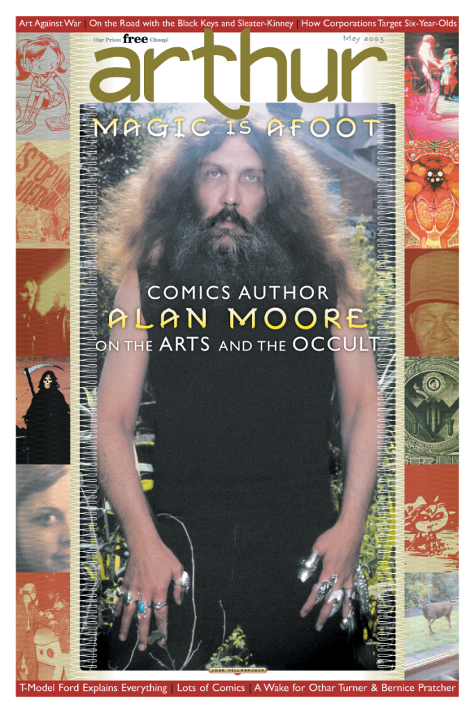 Contents: ALAN MOORE gives Arthur a historical-theoretical-autobiographical earful on the subject of magic and art. Extra-long feature convo with Jay Babcock, with a portrait by John Coulthart and photos by Jose Villarrubia. Check out that finger armor! // Peter Relic rolls out for a week on tour with Akron, Ohio heavy blues superduo THE BLACK KEYS as they open a string of West Coast dates for thee mighty SLEATER-KINNEY. Photographs by Melanie Pullen and Pete; jokes by the Black Keys; chuckles by you the reader. // In an exclusive, chapter-length excerpt from her new book Branded: The Buying and Selling of Teenagers, author ALISSA QUART examines how corporations and marketers scheme to take advantage of six-year-olds. // JOHN COULTHART updates the US dollar bill to reflect the current climate. // 79-year-old bluesfella T-MODEL FORD has got all the answers. This issue he lets us know where Bin Laden is probably hiding, what to do about a bad temper, how old you should be when you get married and why some women have mustaches. // Karin Bolender remembers the late Othar Turner and Bernice Pratcher, the risen stars of the Mississippi fife-and-drum tradition. With photographs by Christian Patterson and Yancey Allison // Comics by Martin Cendreda, Renee French, Luster Kaboom, Steven Weissman, Johnny Ryan, Jordan Crane and Sammy Harkham // And, in their regular “Bull Tongue” column, Byron Coley & Thurston Moore once again sift through the voids of all known undergrounds to bring you the good stuff in recordings, text and card decks (!).