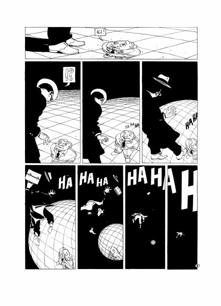 My surprise at the richness of Mathieu’s work was more than a reflection of my own naïveté regarding comics. His breadth of references really is startling. For one thing, a host of literary greats watch over his universe. Kafka—whose name turned backwards and then spelled out phonetically makes “Acquefacques”—holds dominion, but the Surrealists are here, too, alongside Borges, Perec, and many others. Of these literary presences, Mathieu says, “It’s a very intimate relationship, the way you’re touched by an artist. It’s like family. You do what they did. You redo Borges the way Borges redid things from Cervantes. We all have a compost pile, a nucleus, a trunk, something precious like that.”