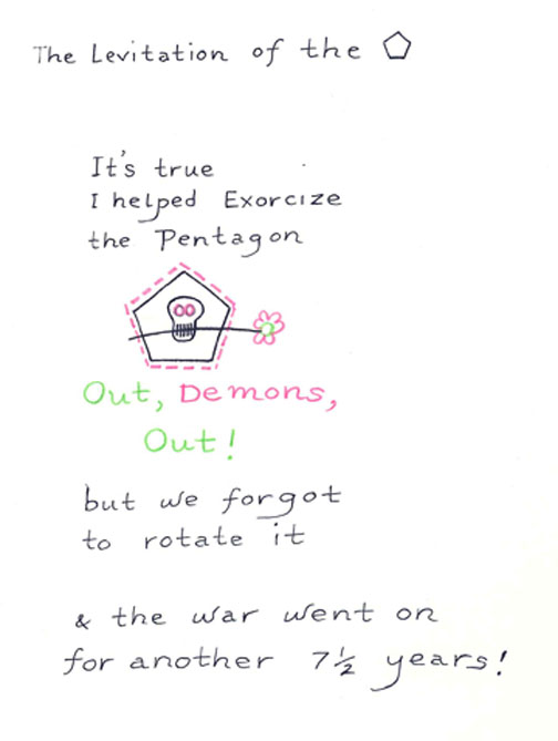 14,000-word oral history of the Oct 21, 1967 exorcism/levitation of the Pentagon, originally published in Arthur’s Novemeber 2004 issue: “Out, Demons, Out!”