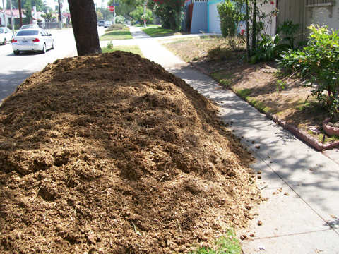 Delivered Monday, 1015am: A truckload of high-grade compost (finely chipped wood and horse stable stuff), for a grand total of sixty bucks, courtesy of the rhyming King of Compost, Altadena, California’s amazing earth wizard Tim Dundon…