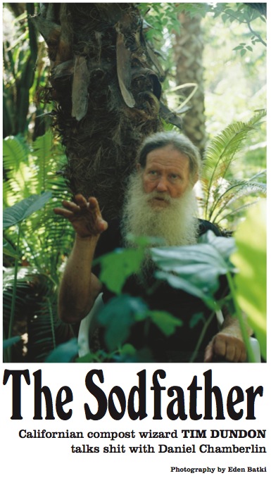 Such fantastical processes are well known to dirt-worshipping gardening sage Tim Dundon, the beneficent caretaker of California’s most famous compost pile and the kindly warden of the tropical forest that has fruited from its rich humus. It’s here that Dundon, a scientist-poet in the truest hermetic sense, finds hope and salvation in the transformation of death into life—of rotting organic matter into nutrient-rich soil—that takes place daily in the fecund jungle he maintains on his one-acre yard.